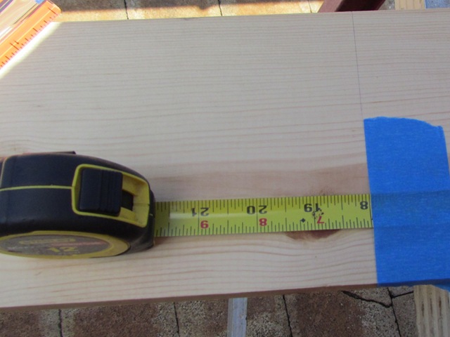 Then I started marking where my inches and feet were using the tape, measuring tape, and pencil. I wanted to be able to mark my son’s height starting from when he was born so I started my measurements at 18 inches and went to 6 feet, 6 inches.