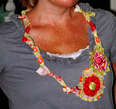 - Now use Gorilla Glue to attach the fabric flowers to the necklace.