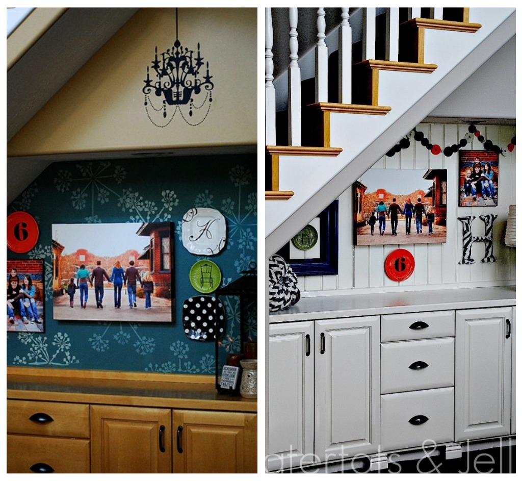 We also painted the little nook in our family room white and added some beadboard to the back. It’s a great place to display family pictures!