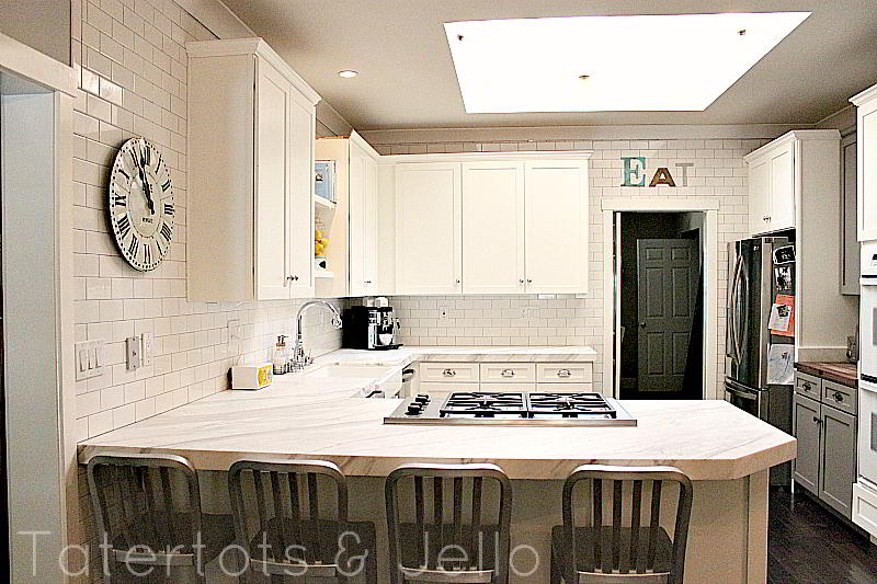 The most expensive part of the remodel was the carrera marble countertops. If you are looking for the same look for less money, there are some man-made stone alternatives which are a fraction of the cost.