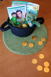 So here is his pot of gold that the leprechaun can fill- I may emroider his name in gold sometime
