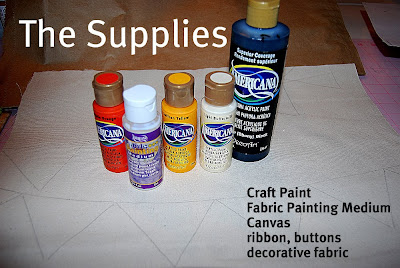 3. I used DecoArt’s Fabric Medium to make the regular paint into fabric paint. I added a few drops to each of the colors and then painted the fabric.