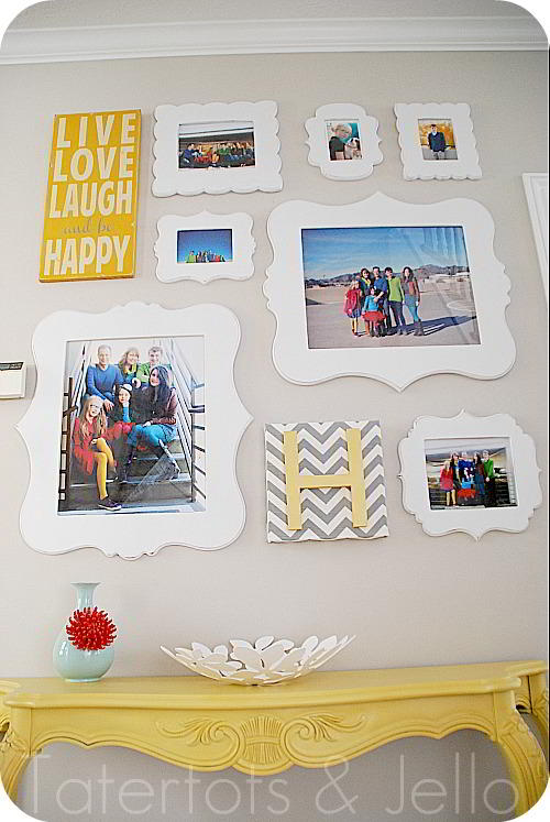 - Share this giveaway on Twitter. The share button is at the bottom of the post. Here’s an example tweet — “ I want to #Win a Cut It Out Frames gallery wall from Tatertots & Jello @jenjentrixie #Giveaway #HomeDecor http://bit.ly/qWfwPa “