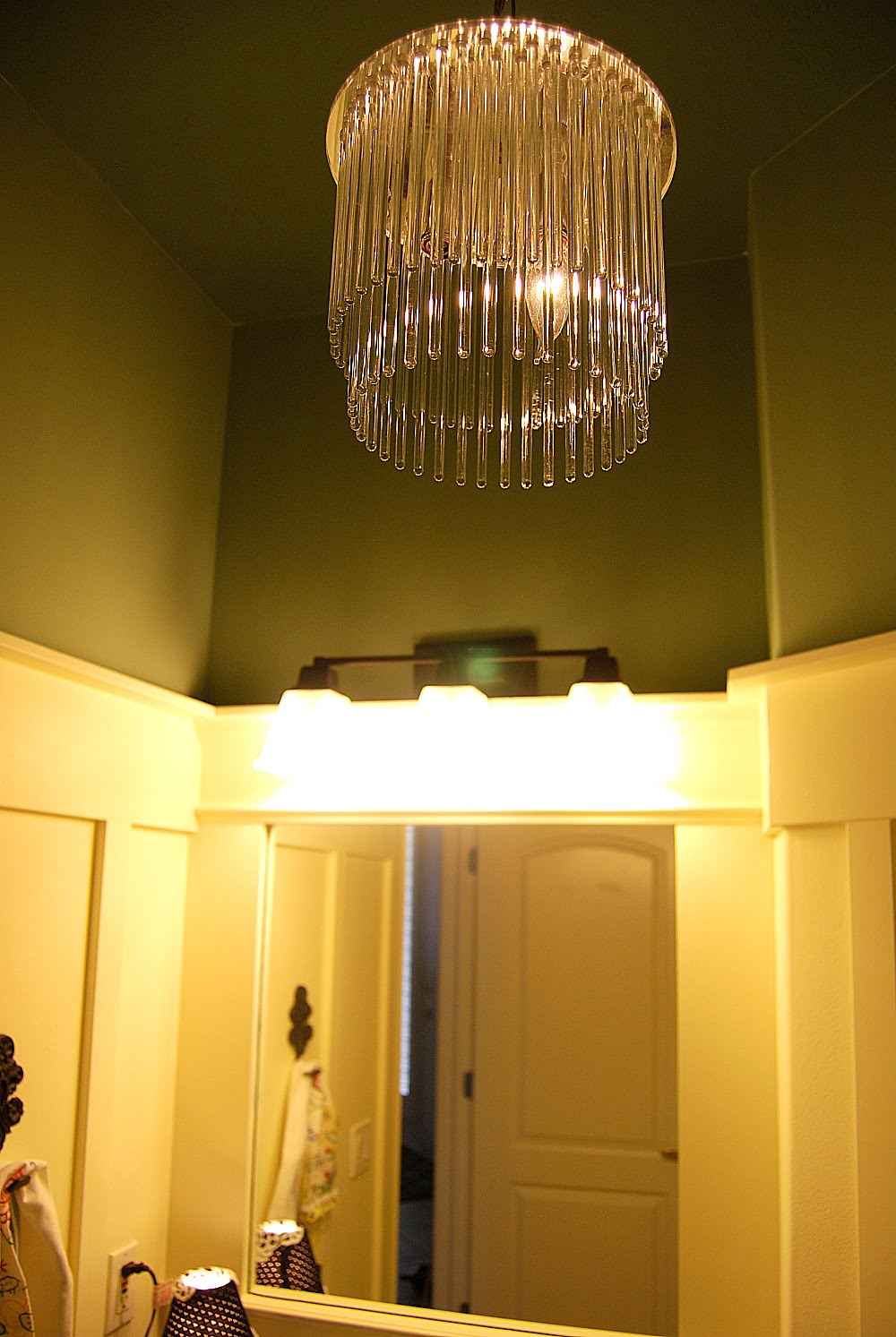 Anyways… Your bathroom looks great! I am in LOVE with the chandelier! Did you make that or was it store bought??