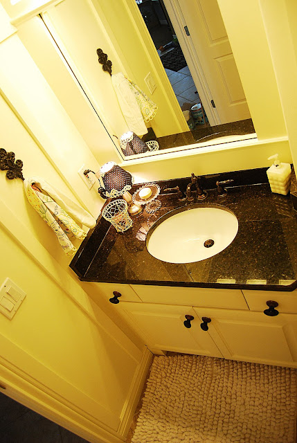 GORGEOUS!!!!!! LOVE the lighting and the little ckae plate for the soap holder…ADORE! Greta job! Great inspiration! 🙂