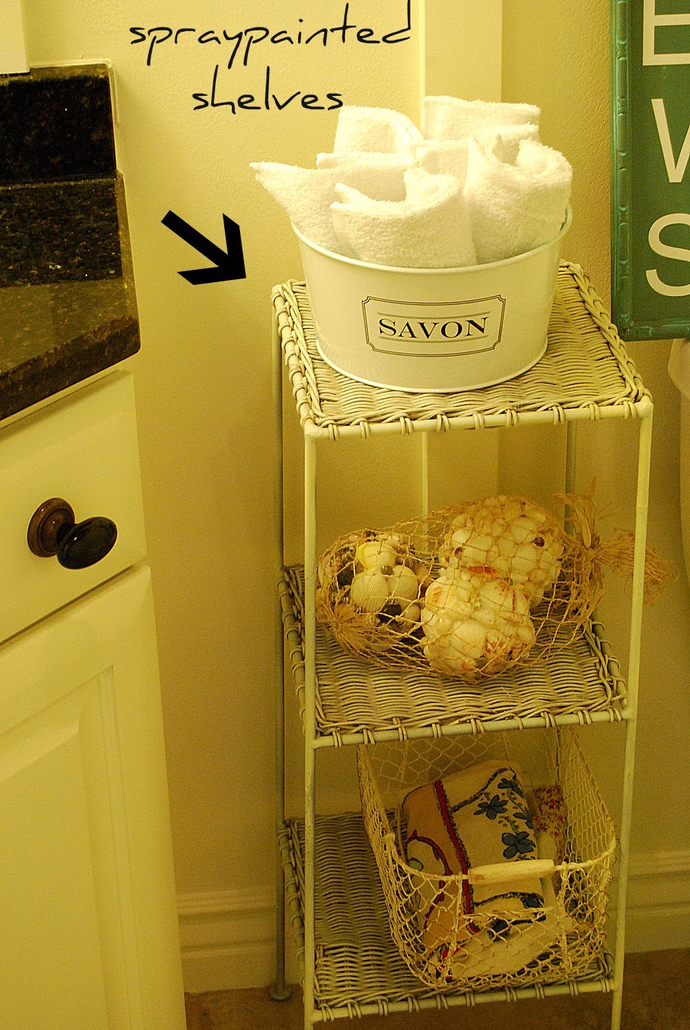 I love the new look. I love the little cake stand that you use as a soap dish. I love the free cycle lighting…when can you come to my house!!!