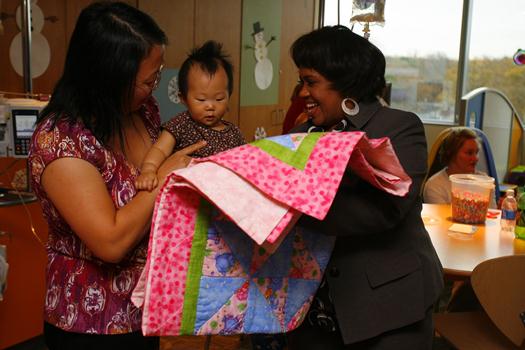 Kids need comfort, especially when they’re somewhere unfamiliar like a hospital and dealing with something scary and hard like being sick. Award-winning actress Chandra Wilson, who plays Dr. Miranda Bailey on “Grey’s Anatomy” (ABC) is the spokesperson for the Downy Touch of Comfort program. She even takes time to participate in quilt deliveries: