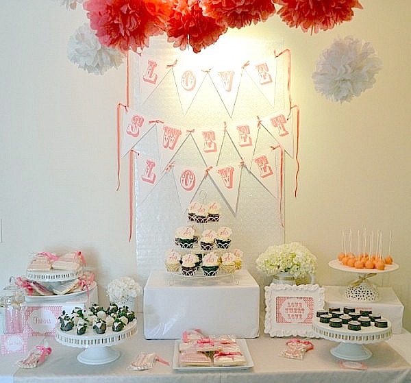 Recently, we threw a bridal shower for a friend using a “Love Sweet Love” theme and we thought we’d share some of the printables for your use in case you too are throwing a bridal shower! Coral seems to be a very popular wedding color lately and who doesn’t love the SWEET side of love at a bridal shower!!
