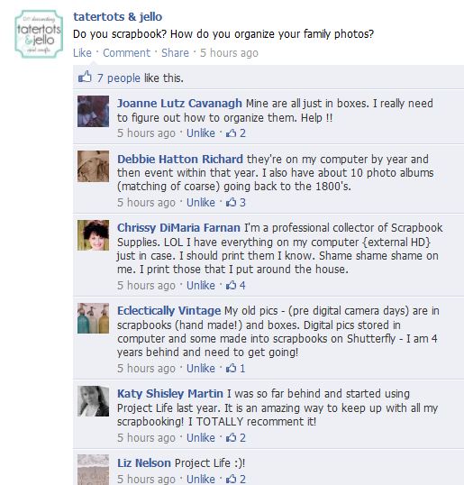 Ooo!!! I have a post to link up tonight, so I will be entering the Giveaway for sure. I used to LOVE scrapbooking too. I still have all of my supplies–just don’t have the time. Project Life looks so cool!