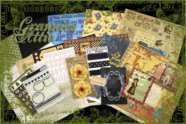 Patterned Paper:Graphic 45:Mary, Mary Quite ContraryAlphabet GamesConnect The Dots,Childs Play,Dollie’s Teaparty,I Think I Can,  Jack & Jill, Daisy D’s:,Blackberry, No. 11Embellishments:American Crafts: Thickers Alphabets “Hat Box” Pink Prima: Frillies Flowers, Vanilla, Nunn Designs: Gold Frame, 2 Gold Photo Corners, ZVA Creative: Crystal Swirls Bad Girls Vintage: Pharmacy Label, Bill Of Lading, Bad Girl Postcard Jeni Bowlin: Apothecary Stickers: Navy, Black Faith Bingo Card, Crepe Paper Ribbon: Black, Graphic 45: Playtimes Past Tags