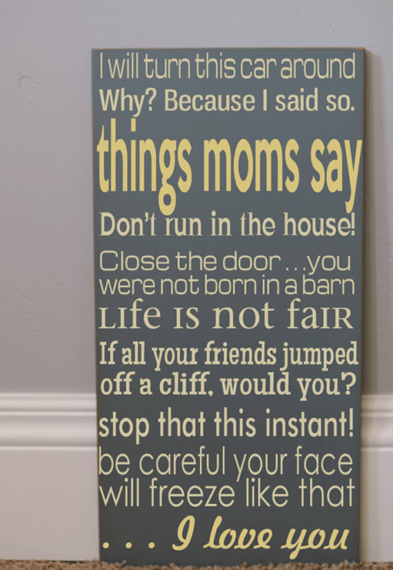 Thanks for the chance to win… I say all of the Mom things! LOL! I need that so I can just point to the sign!!!