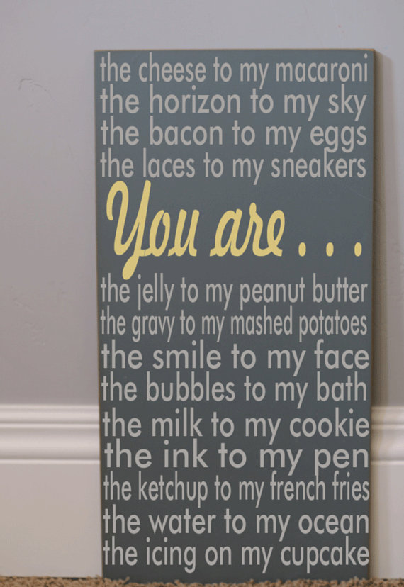I’ve always like You Are My Sunshine, but now I’m leaning toward the big You Are the Jelly to My Peanut Butter, etc. So very cute!
