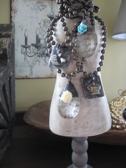 love the soldered burlap & glitter pendants – precious!