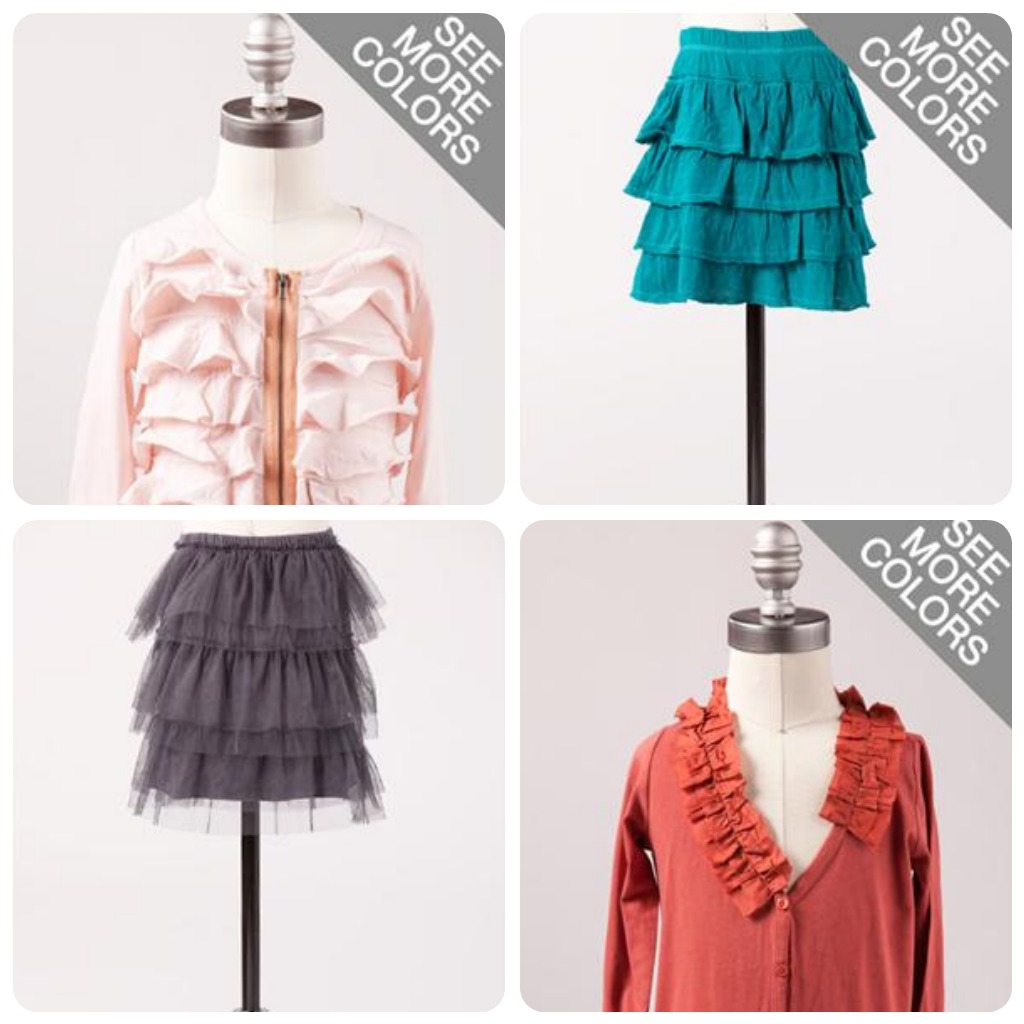 I love the “Gotta Have” skirt, and in the little girls’ the stacked ruffle cardigan is just too cute.