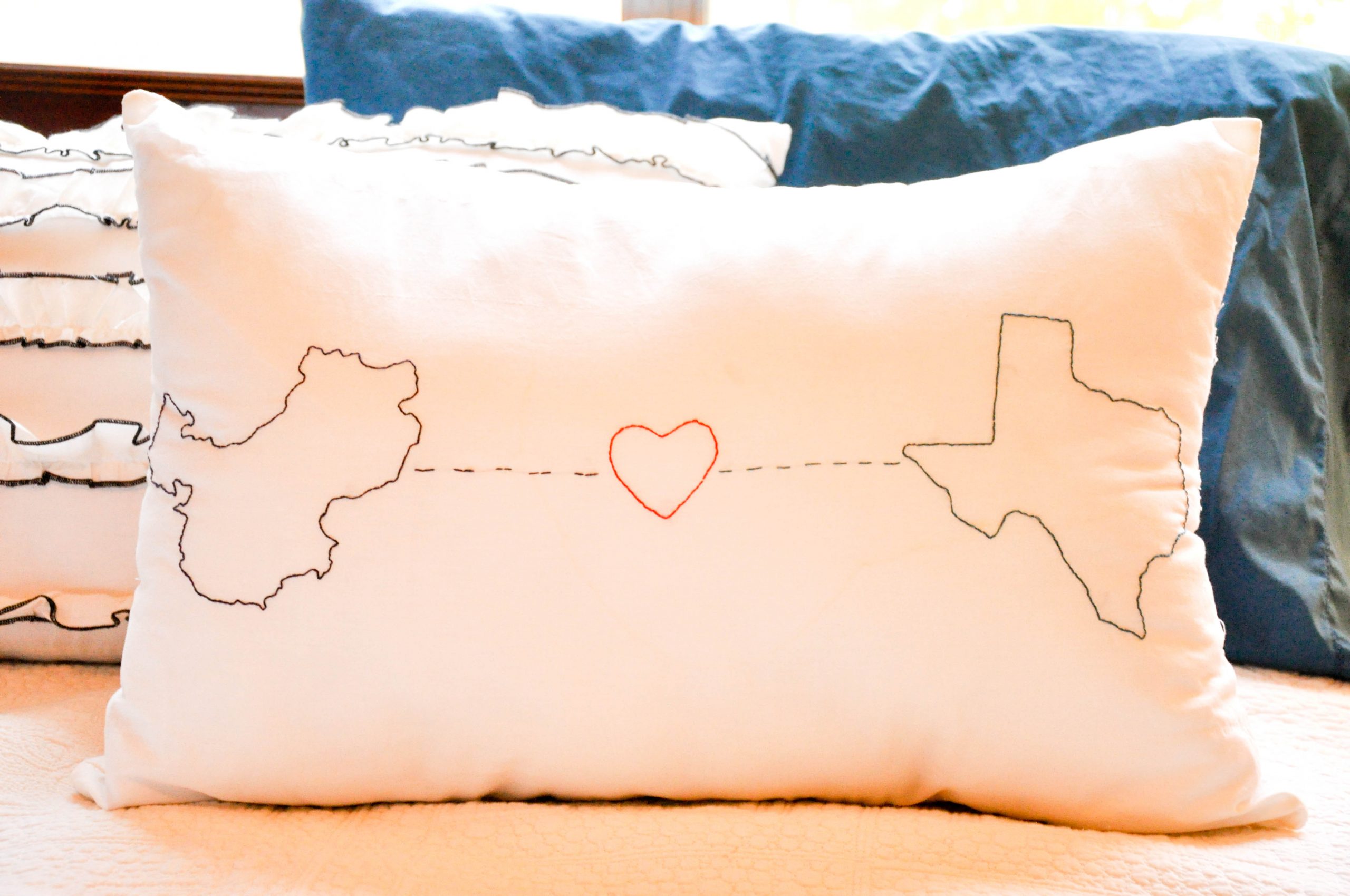 Erin from In Between Laundry is giving away a Custom Embroidered Geography Love Pillow Cover!!