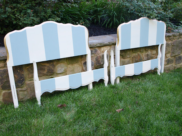 Stripes on furniture always adds some whimsy @ Liz Marie
