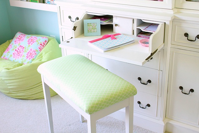 An old phone table/bench gets a makeover with paint @ Crafty Scrappy Happy