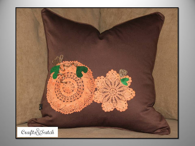 Learn how to make this Doily Pumpkin Pillow @ Crafts & Sutch