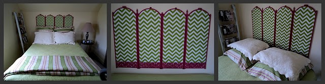And another great idea for a headboard – turn a Fireplace Screen into a Headboard @ Richmond Thrifter