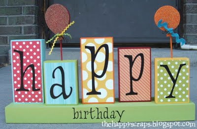 Turn wood blocks into a Happy Birthday centerpiece @ The Happy Scraps