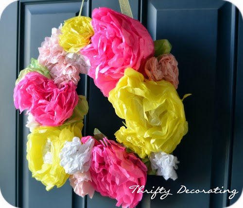 Make a Colorful Wreath out of tissue paper and an old pizza box @ Thrifty Decorating