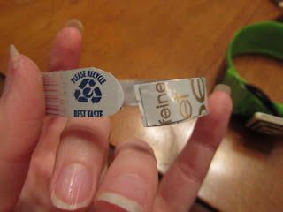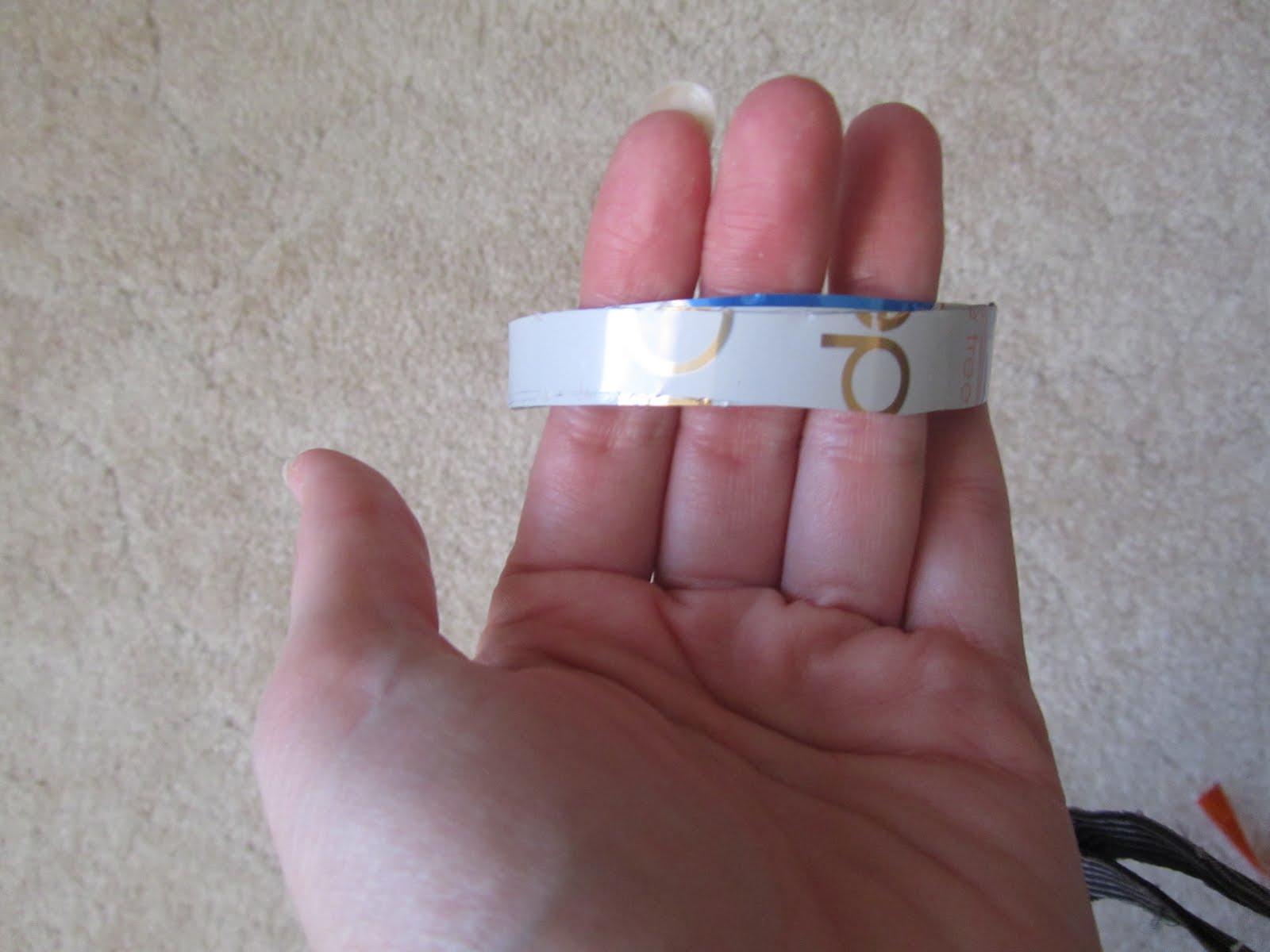 3) Use super glue or gorilla glue to glue the two soda can strips together one on top of the other. (This helps give the bracelet more structure.) Let dry.