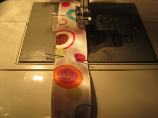 6) Pin ribbons wrong sides together and sew down each side stopping about a 1/2 from the end on each side.