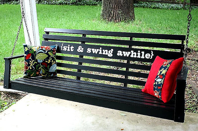 Beautiful porch swing! I've had mine for nearly three years and it's still bare wood. I needed this shot of inspiration today. I just might tackle that swing yet! 🙂