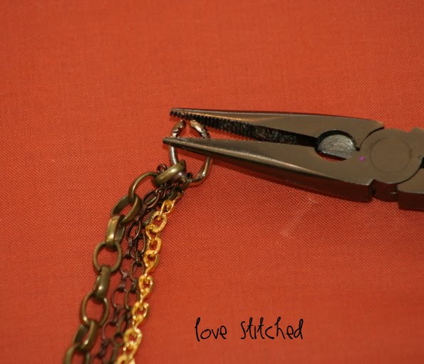 Start cutting all your chain to desired length…make each on a bit longer than the next so they layered.