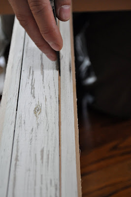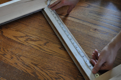 Now you want to start measuring your frame. Lay the window on top of a 1×3 to measure the length. Mark the length with a pencil. (Some of you fancy people might just measure the window and transfer that measurement to the board, but here in our house, we like to keep things nice and complicated.)