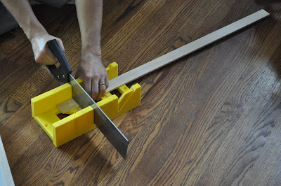Make the cut, then use that board to measure the board for the opposite side of the window. Make that cut as well. Look back two shots if you need another picture of the saw.