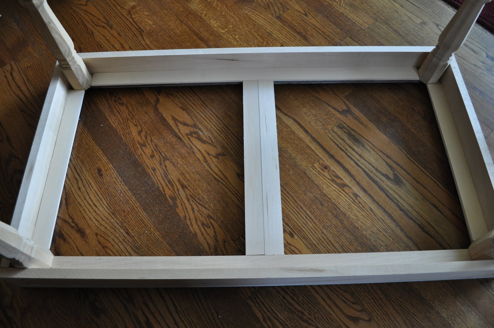 We won’t screw the glass support slats on until later, so remove those pieces and set them aside.