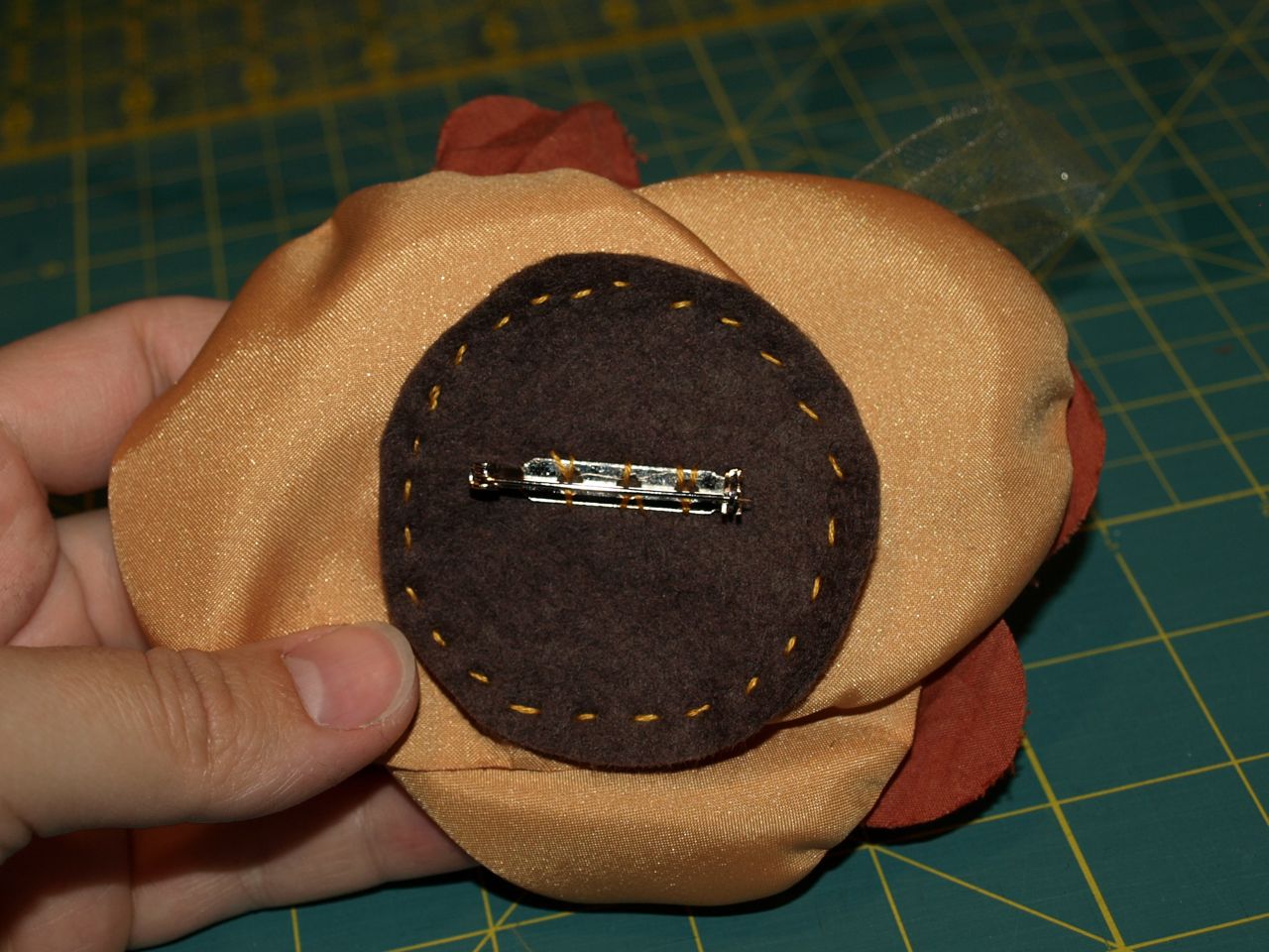 12. Fold the crinkled petals to give them a bit of dimension, and sew them to the pin.