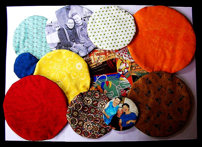 22. By hand, stitch the napkin rings to the centre back of fabric photo circles that you made in steps 17-18.