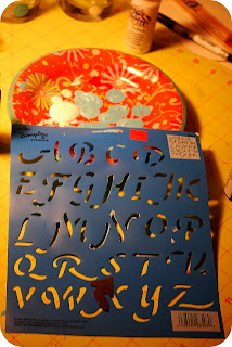 Another idea, you can use stencils. I used a stencil to add an initial to one set of my glasses. It is helpful to tape the stencil in place so it doesn’t slip around.