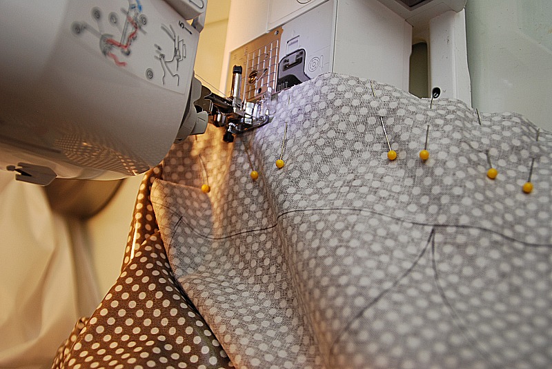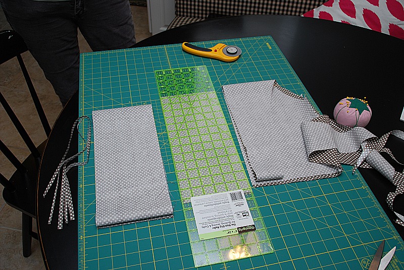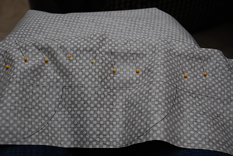 So that was my challenge in this project. And since I am new to sewing, I was a little intimidated my the project. Luckily my mom happened to be out when I was puzzling this project out. And she helped me — yay for moms!!And we decided that it needed to be as complicated as possible — so we added some scallops to the project. (Just kidding– it turned out to not be as complicated as I thought, although I was glad she helped me)