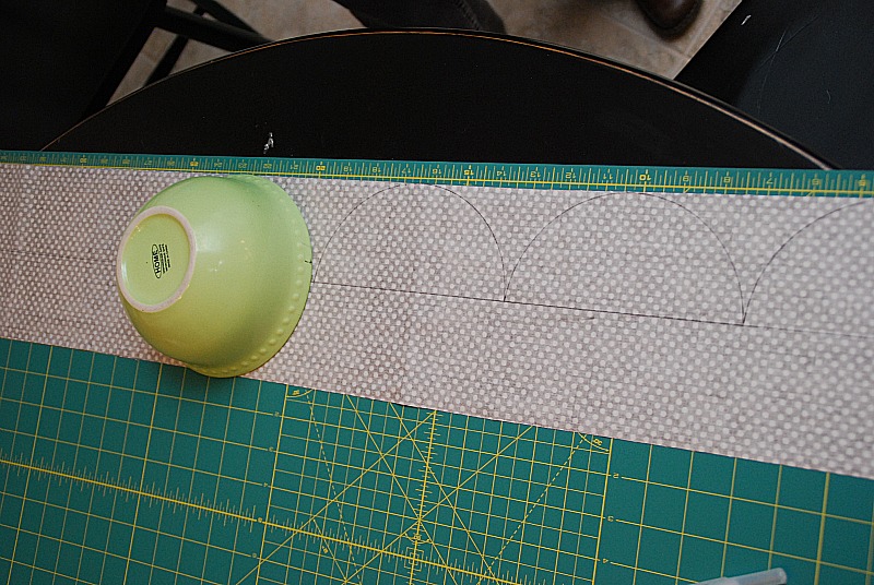 - To get the scallops perfect you need a protractor OR a bowl that is the right width. I happened to have a cereal bowl that was 6 inches wide – yay!!