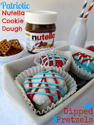 Patriotic Nutella Cookie Dough Dipped Pretzels @ Crazy for Crust