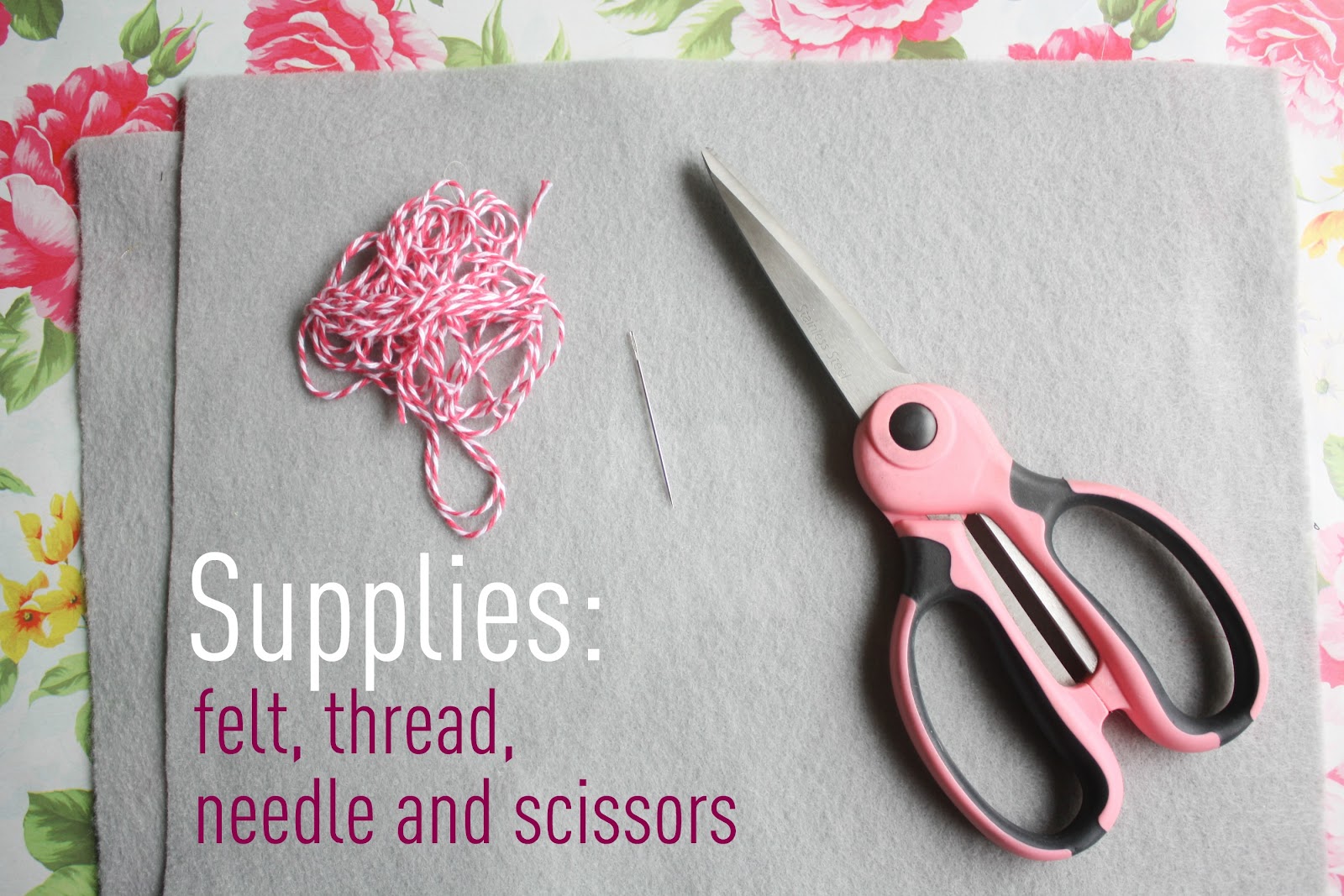 your color choice of felt, thread (embroidery floss or bakers twine), a needle and scissors.