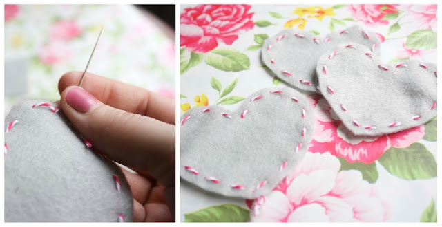 First up decide how big you want your hearts, I cut a standard size sheet of felt into thirds and then free hand cut my heart shape (feel free to print a template or use a fancy cutting machine for this part).