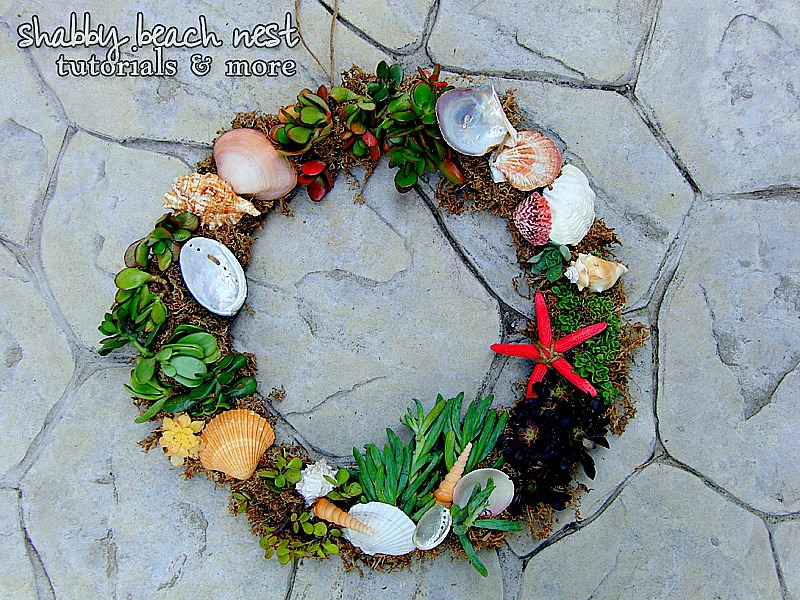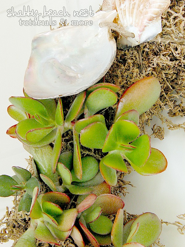 Would you like to learn how to make this living (but totally easy to maintain) succulent and shell wreath? Great!! Here’s what you need: