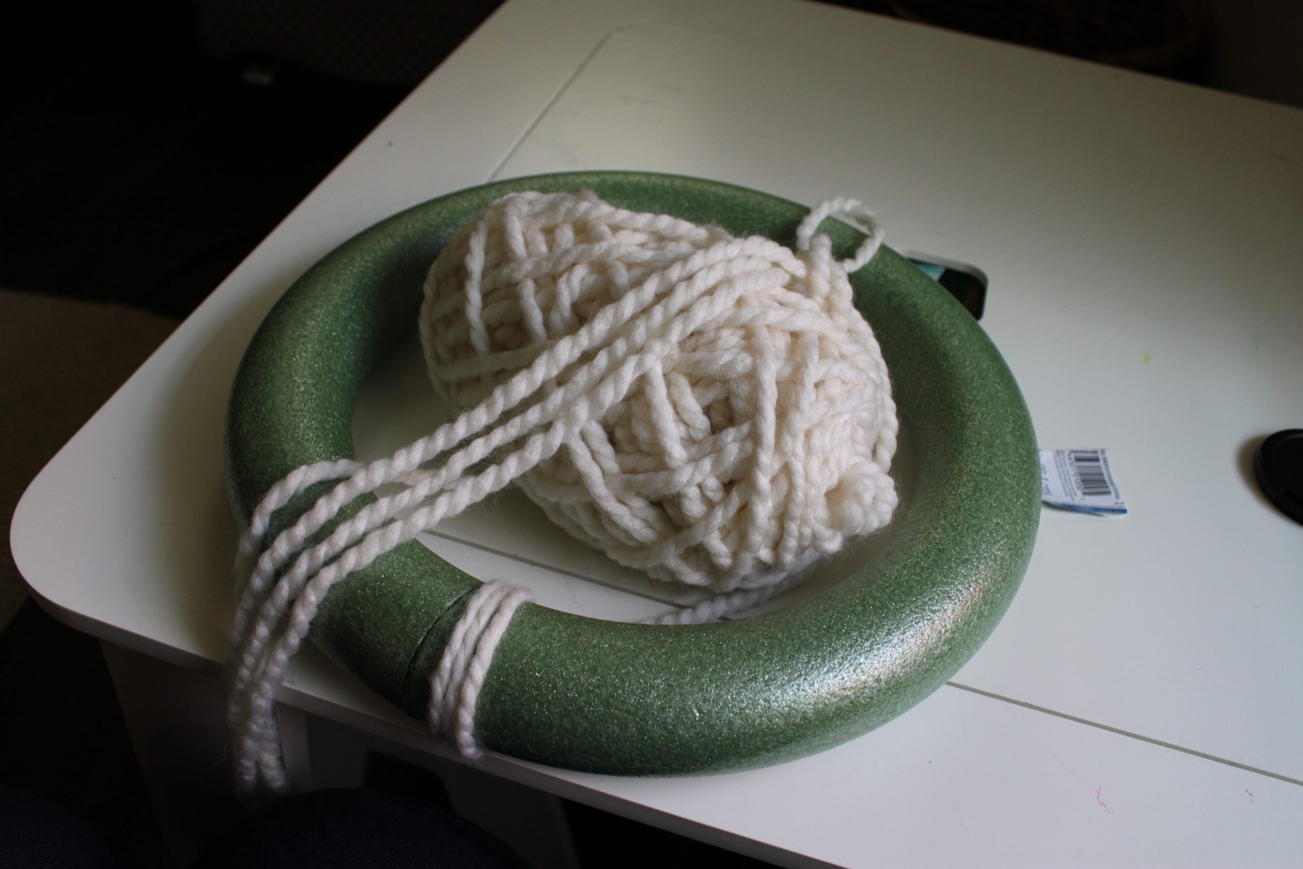 - Start by wrapping your wreath form with the yarn. Keep it tight and even. The bulkier the yarn, the faster this step will be.