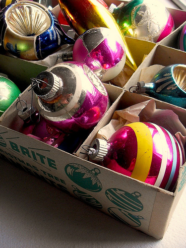 Do you have a collection that you love to display at Christmas? I bought some vintage Christmas ornaments about 10 years ago. They are scratched up with wear but beautiful to me. I love to think of all of the Christmases these ornaments have seen, the memories they have made in all of those years!!