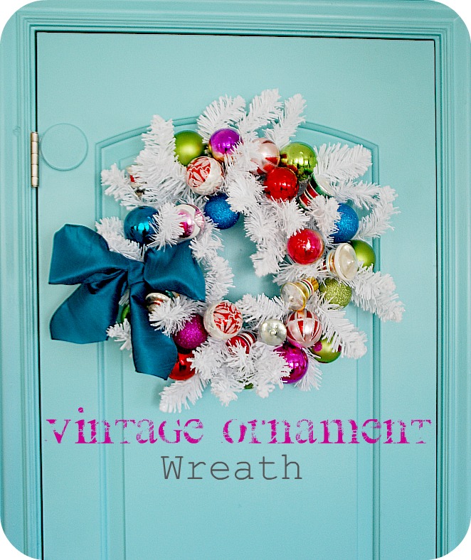 This wreath took me 1/2 hour to make and I love looking at it in my kitchen. It really shows off my little ornament collection!!
