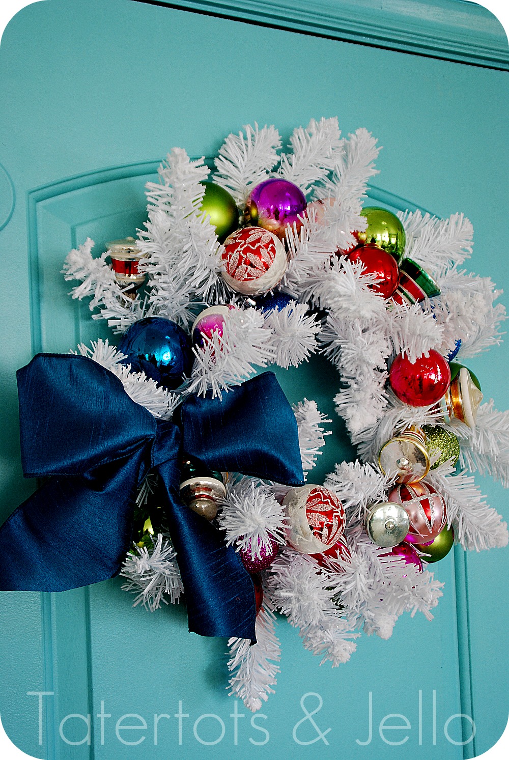 - I added a few newer ornaments to fill in the wreath and add a little bling.