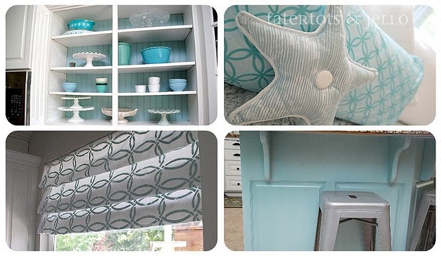 I have a few different aqua paint colors going on, Martha Stewart Rain Water and Martha Stewart Aegean Blue 🙂