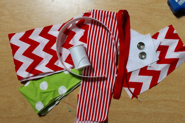 -19 inch long, 2.5 inch wide striped fabric (similar here) to cover the headband