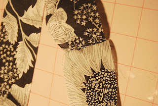 If you want to do this, make sure the scarf is wide enough. This particular scarf was really wide. The pillow I made the cover for is 20 inches by 20 inches. So the first thing I did was lay the scarf out on my cutting mat.
