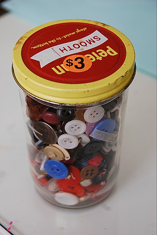 It was fun finding vintage button to use for each flower. I found this bottle of buttons at a garage sale a couple of years ago.