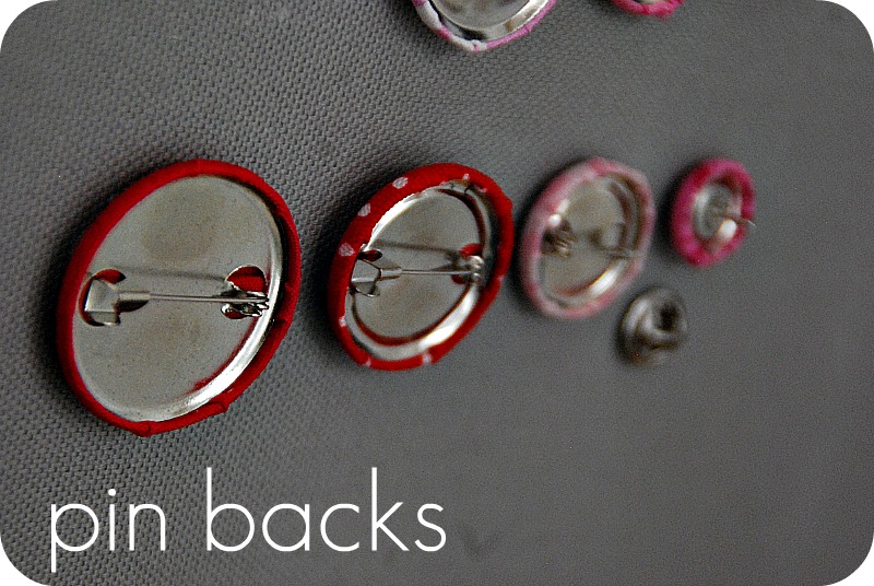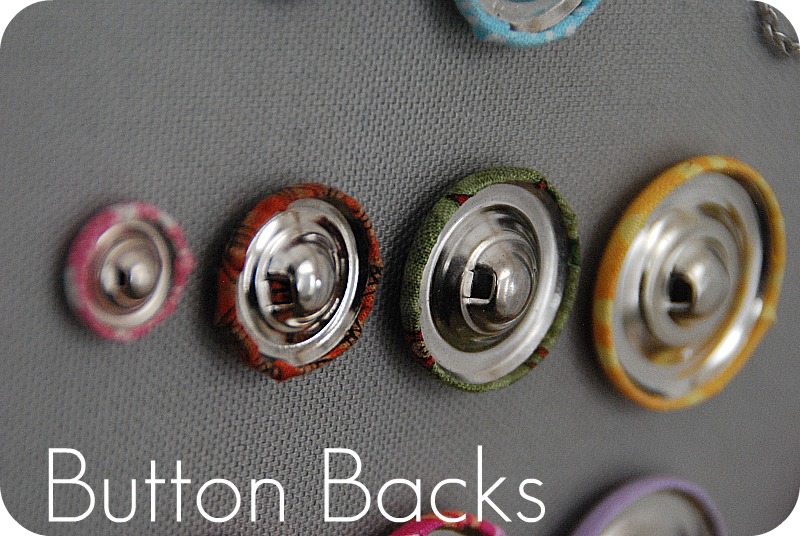 In addition to the snaps and screw backs, there are pins, button backs and brads. You can pretty much make any kind of project your imagination can dream up with these covered buttons. So fun!!